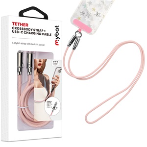 • MyBat Tether Crossbody Strap + USB-C Charging Cable(L=4.2 FT) - Pink