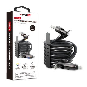 • MyBat Pro 4-in-1 Silicone Charging Cable w/ RGB Lights - 4FT - Black